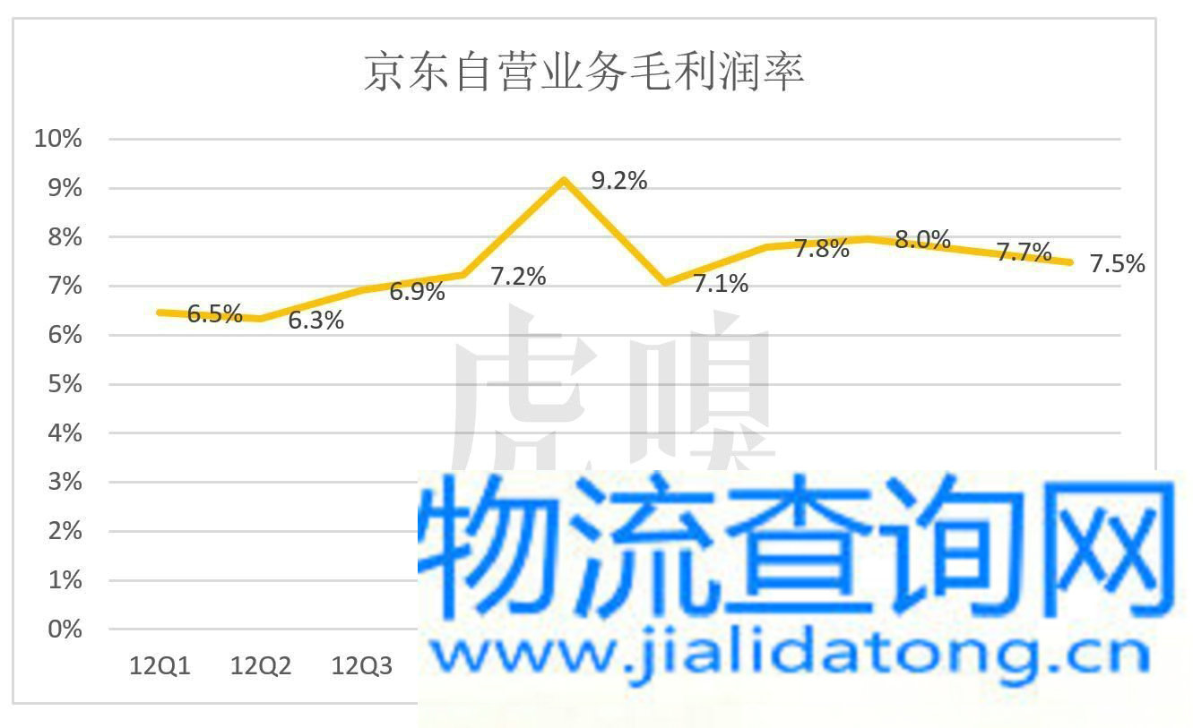 上市前,京东自营业务毛利润率稳中有升,2012年Q1为6.5%,2014年Q2达7.5%。