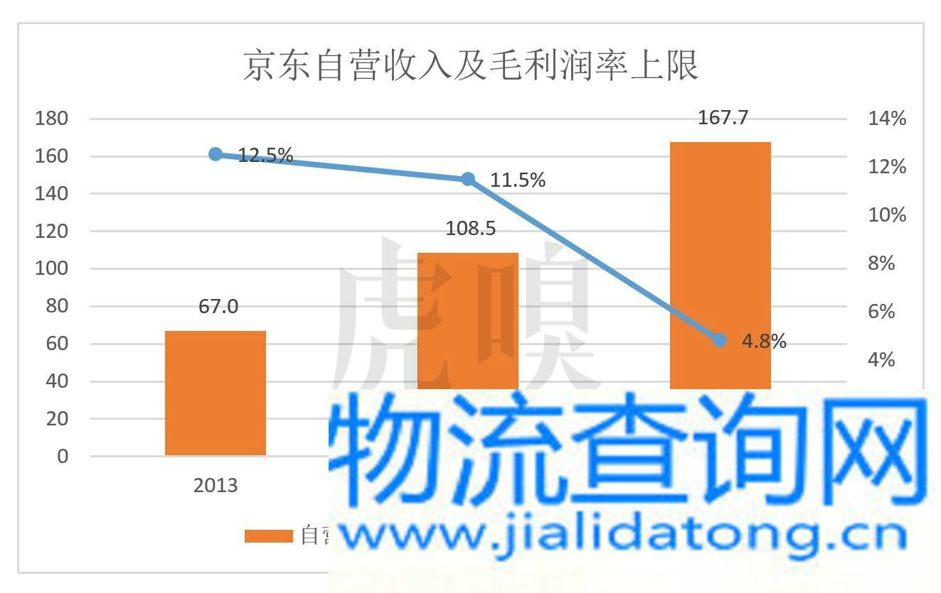 2015年,京东自营毛利润率的上限是4.5%,自建物流配送成本的下限是7.5%!尽管以上推算难免存在误差,但“‘自营+自建’模式是亏损的”这个结论应当能站得住脚。