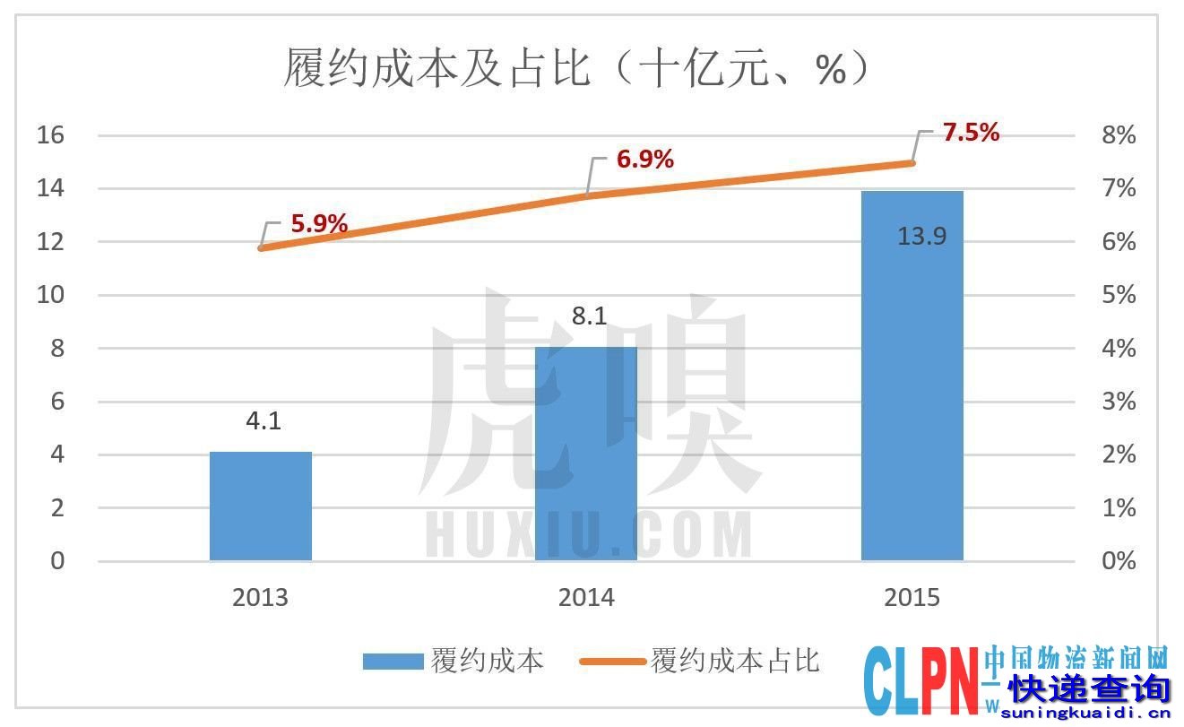 但“覆约成本”只是物流成本的一部分。庞大的固定资产要折旧、无形资产要摊销,还有货款、发债的相关财务费用等等。因此覆约成本占比只是物流配送成本占比的下限。